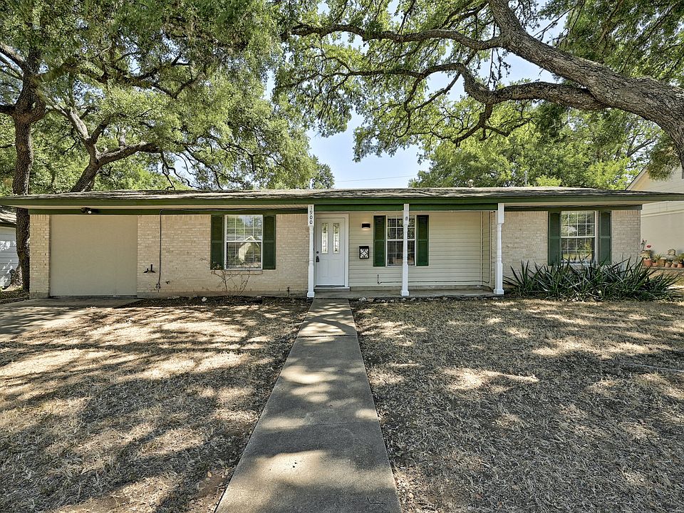 South Austin ranch style home walking distance to retail shops on Manchaca and only 10 minutes to downtown Austin. Clean interior with stained concrete floors and neutral colors throughout. Fresh kitchen with gray quartz counters, white subway tile backsplash, white appliances & white cabinets (remodeled since photos were taken). Full size washer/dryer hookups included. Spacious primary bedroom with private bath. Converted single car garage is perfect for office, play room, home gym or flex space/additional storage. Backyard has a keyed storage shed and paved patio. South Austin living at its best! Tenant responsible for utilities and lawn maintenance