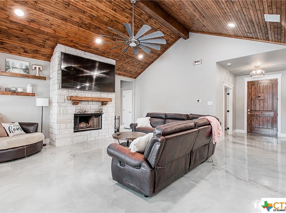 Golf course living doesn't get better! Located in the historic and highly sought-after Mill Creek area, just a few minutes walk or seconds in your golf cart to Mill Creek Golf Club. Luxury marble style glazed epoxy coated flooring throughout, granite countertops in all three bathrooms and kitchen, gorgeous ceiling wood work with selected light fixtures all combined to make this home still feel like a new build, built in 2020. With approximately 2,400 well-appointed square footage, you won’t need to worry about feeling cramped. There are three large bedrooms, an expansive living room combined with a wood-burning fireplace and perfect sized Dining Room. A Flex room could be another bedroom/office/gym. The massive outdoor living space is gorgeous with awe inspiring fireplace and huge backyard for the dogs to enjoy. This home has it all. Schedule your showing to see it today!