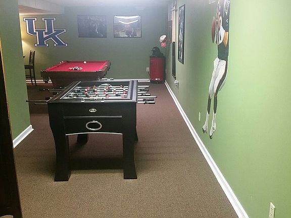 Brick 3 BR/2.5 bath home with finished basement and large 10x16 out building in quiet well landscaped neighborhood one block away from trail access to Elizabethtown Nature Park and Freeman Lake. Eleven minutes from Fort Knox gates. Dual gas/electric heating systems.