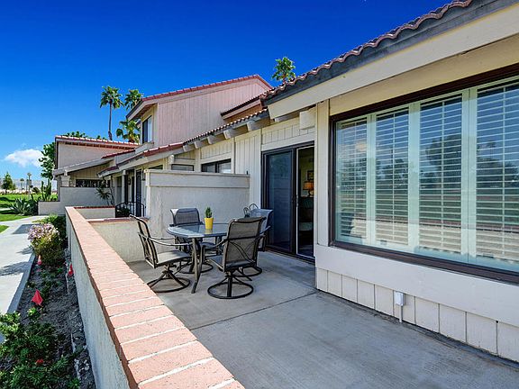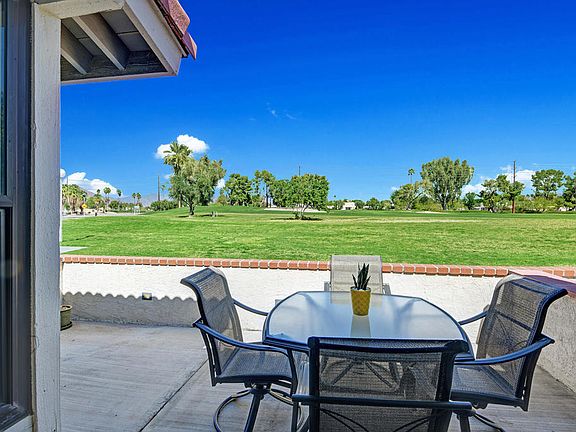Welcome to the gated community of Mountain Shadows. This 2-story condo overlooks the green on the 16th hole of the Tahquitz Creek Resort golf course and has lovely views of the San Bernardino mountains. There are 3 bedrooms, 2 bathrooms, a living room and a kitchen/dining area. The upstairs features two bedrooms and a full bathroom. The main floor has a bathroom with shower, laundry in closet, and a 3rd bedroom (den) with a slider that opens to a front patio facing the golf course. Enjoy incredible sunsets on this patio with beautiful west facing mountain views. The living room has vaulted ceilings and there are wood shutters on all windows. The enclosed private back patio is accessible directly from the reserved carport parking spot and provides entry to the kitchen/dining area. Enjoy outdoor dining and BBQ-ing on this private patio with lovely west facing mountain views. Mountain Shadows is one of the most prominent rental income communities in Palm Springs with no rental restrictions offering a great opportunity for second home buyers or investors. Additional features are low HOA dues, 6 pools, 1 spa and 2 tennis courts. This is the lowest priced condo in Mountain Shadows and is a great opportunity. Come see it today!