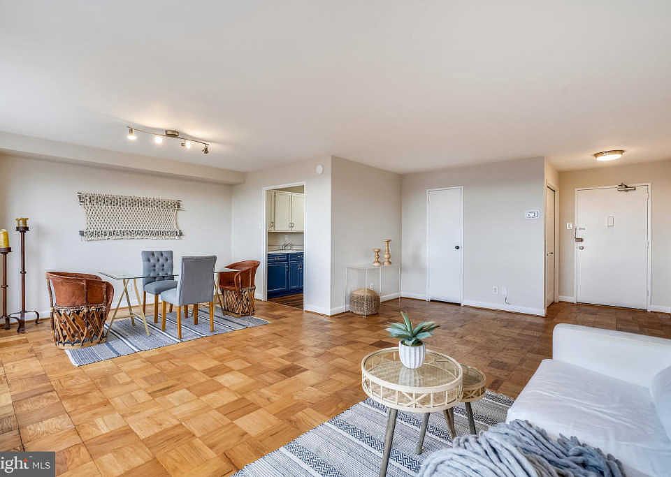 HUGE bright south-facing 1BR on high floor. Layout has potential for addition of large den! Wood floor, tons of closets (included a walk-in!). Updated fresh white bath (with subway tile!). Chic kitchen just updated with gas range, âtuxedo cabinets,â new floor. New contemporary lighting and hardware throughout. Amenity rich, centrally located building across from future PURPLE LINE station (investment potential!!!). Install of in-unit washer/dryer allowed. UTILITIES INCLUDED. Building has outdoor POOL, staffed front desk, bike room, onsite manager, soon-to-be-built roof deck (rendering in photos). Ample FREE PARKING in the lot behind the building and garage parking available for rent. Building well-funded, more than $2 MILLION IN RESERVES! Onsite management and in-unit maintenance program (easy living). FHA APPROVED! Dog and cat friendly! Centrally located downtown Silver Spring, walk to Metro. Easy commute to 270 tech corridor, UMD, Bethesda, DC. Full package for condition and location -- WILL GO QUICKLY!! Garage parking available for additional $10k.