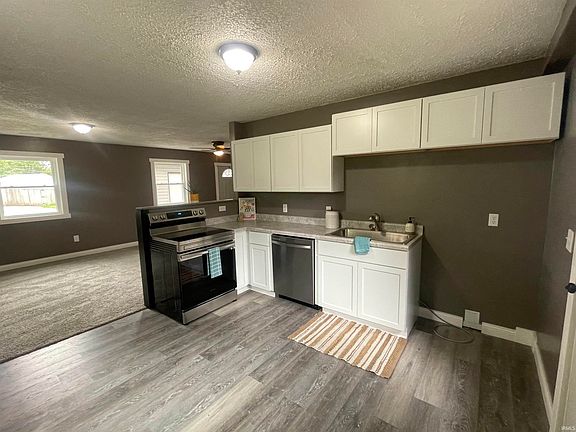 Completely remodeled 2 bed/ 1 bath home w a detached garage located on Evansville's East side. Step inside and you will find fresh neutral paint and flooring throughout, along with new light fixtures and interior doors. The sizable living room opens up to the eat-in kitchen, showcasing fresh new white cabinets, neutral countertops, new stainless steel appliances and laminate wood flooring. Both bedrooms are spacious with ample closet space and one bedroom offers double closets. The bathroom is also completely updated with new lighting, fixtures, vanity and commode. You will also find a generous sized laundry/utility room that offers an additional closet for storage. Not only is this home aestheically pleasing, you will find it to be worry free with all of the other updates that have been done, including: New roof, new siding, new soffit/fascia/gutters, new windows, new exterior doors, new furnace and a/c condenser, and a new tankless hot water heater.