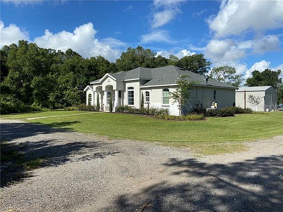 This is a unique find! Great home built in 2016 with just under 4 acres. This hidden gem has a nicely manicured lawn hidden by a woodsy entrance. Once you are in, it opens up to a beautiful home with lots of space and privacy. This home offers a large living space with an open floor plan. The open kitchen includes a large island with granite counter tops. It has a dining space for a quick sit down or the large island offers room for a more informal gathering in the kitchen. This space has lots of cabinets for storage and a separate walk-in pantry. If you prefer a more formal setting there is a separate formal space as well. An added bonus room could be used for media, office, playroom, gym the opportunities are endless. The master bedroom offers dual walk-in closets. Large bathroom with garden tub for soaking, separate large walk-in shower, dual sinks and a large vanity. The two additional bedrooms both have small walk-in closets and share a Jack and Jill bathroom with separate vanities. The outdoor space is cozy with a 12x58 composite deck that spans the entire length of the home. A large portion is covered so you can enjoy the outdoors under the shade and the other end is open and lined with string lites for the perfect evening gathering. This outdoor space overlooks the circular designed fire pit for cool nights. Then beyond that there is a large 30x40 drive through workshop for the perfect man cave or designated space for your toys. There's a lot of storage for you boat, RV or other specialty items you may have. The circular driveway on the back side of the property accesses to second entrance to no traffic side street and allows for easy access. This is truly a must see!!