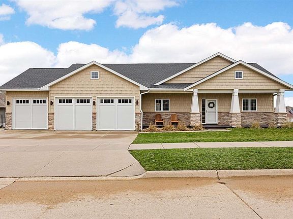 College Community Alert! Award winning schools. Beautiful custom built 5 bedroom 3.5 full bath home with so many upgrades. Can't build for this price- exterior upgrades feature a cozy front porch flanked by tapered pillars, trendy shaker siding and striking dry stacked flagstone. Soaring ceilings, upgraded atrium windows, and open airy views are sure to impress as well. Don't miss a thing in this spacious kitchen with large breakfast bar, updated stainless appliances- the heart of this home and open to everything. Popular split bedroom design. Smart, guest half bath. For those with busy lifestyles, fall in love with the main level laundry and drop zone. Generous main level primary bedroom with full on suite boasting upgrades like dual sinks, trey ceiling, custom tiled walk in shower and huge walk in closet- easy to age in place and never move again! The lower level rec room features a kitchenette, built-ins and striking stone fireplace. The walk out lower and huge windows bring the outside in while providing direct access to outside fun. Bring on the summer BBQs and Fall Tailgates and enjoy your covered patio rain or shine. 3rd Stall garage almost 27 feet long! Bring your big Trucks. Fenced back yard for added value. New firept sand area ideal for an above ground pool as well. NO fussy HOAs to deal with. Easy access to Cedar Valley Nature Trail, Coralville Reservoir Parks and beaches. Fast drive to Solon, Mt Vernon, Cedar Rapids and Iowa City. 24 hours for all Seller responses. Seller has commission reservations on 2 known buyers. Buyer agents to confirm with listing agent prior to making offers. Subject to Seller closing on new home- already under contract.