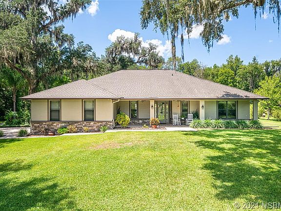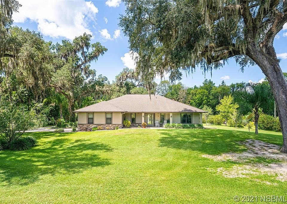 Nestled among the trees in the heart of New Smyrna Beach, this gorgeous gated estate sits on 3.1 acres of manicured grounds. If you love privacy, you will enjoy this private compound situated in one of the most pristine areas of New Smyrna and close to the white sand beaches and Flagler Avenue. This custom built 4 bedroom 2 bathroom, 3 car garage residence built by Larry Gross has so many custom features. Gourmet kitchen with all stainless appliances, granite counters and even his and hers pantries! The large owners suite with ensuite bathroom, nice double sink, walk in shower, his and hers separate closets. Another nice feature is there is also a French door from the bathroom out to the covered patio, with a gorgeous stone fireplace and sparkling salt water pool. Watch tv or sit by the fire, in the cool evenings. Did I mention the park like setting surrounding you completely? Horses are welcome. With the lovely rural setting comes Agricultural zoning, as there is a A3 exemption with a tree nursery on site, which keeps your taxes very reasonable. This estate is one place to bring every toy or any toy, boat, RV or car you ever dreamed of owning! Located in the back of the property are 2 large new storage garages. Garage 1 is 24x50, and has a ceiling height of 10 feet. Garage 2 is 30x40 with 12 foot ceilings, easy to store a RV. Both have electric already in place and built on concrete slabs. So, a total of 2400 square feet of storage, plus a 3 car garage attached to the home. Great for a car collector, workshop, business or deluxe his and hers man-cave or she-shed. From the minute you go through the gate and up the driveway, I promise you have not seen anything like this spectacular property. **There is also an additional 1.3 acre buildable lot available for purchase. So if you want to expand your compound, it also has the Agricultural zoning, or build an additional residence for family or guests.** ALL INFORMATION IS DEEMED RELIABLE BUT NOT GUARANTEED