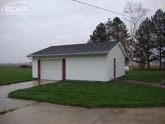 Totally secluded, surrounded by farm fields, peaceful and quiet! Large ranch home needs some TLC and a roof but a very good bargain. Cash only due to roof condition. The home offers 2.5 acres, 2 car garage and 2nd detached oversized garage plus 2 sheds. Great room sizes, large kitchen with custom cabinets, family room and living room.