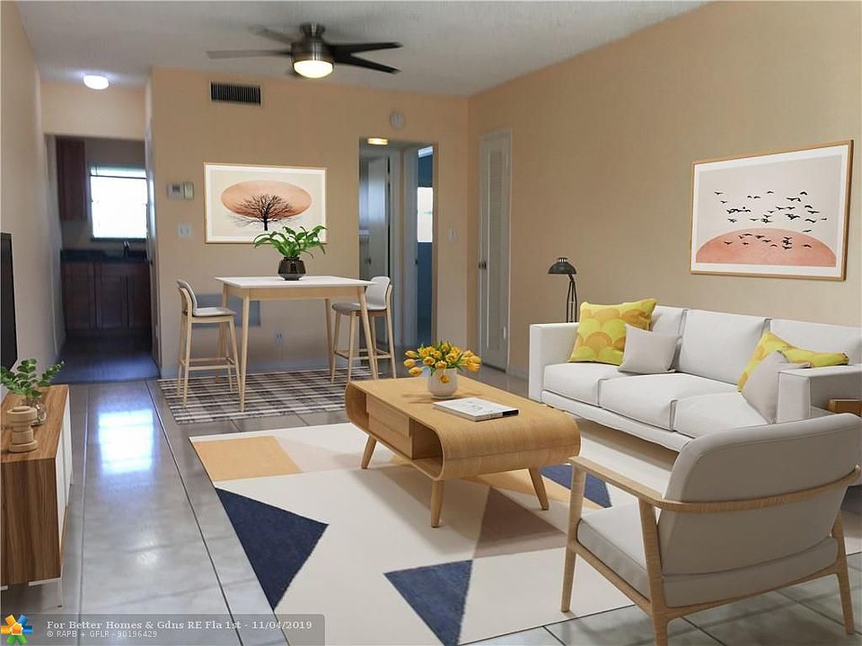 Mid Century Modern Penthouse 1Br in a Classic Victoria Park boutique building! Immaculate Light Bright and Airy 1/1 in move in condition with tiles floors, updated kitchen, updated bathroom, and a newer AC and ceiling fans. Beautifully maintained heated community pool and grounds with lush tropical landscaping. Updated Elevator and additional storage as well. Very close to the beach, Galleria mall, restaurants, and downtown.