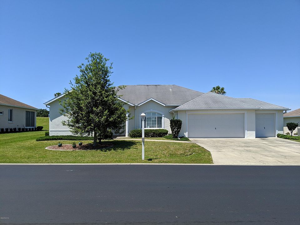 GOLF COURSE HOME W/A GOLF CART GARAGE. Beautiful views of the fairway. Enjoy living & entertaining in this home known as the Majesty Model. 3/2/2 split plan. Relax or entertain in the formal living room & serve your guests dinner in the open dining room. Enjoy cooking in the large kit which is open to the family room. The fam rm is great for kicking back & watching your large flat screen TV. You will appreciate the GC views from the kit, fm rm, dining rm, enclosed screen room, master bdrm & 2nd guest bdrm. The master offers ample room for all of your bedroom furniture. The master is approx 15'X15'. The master bath is a dream w/double sinks, garden tub, walk in shower & glass block window which offers a lot of natural light. This floor plan is a highly desirable model in Ocala Palms.