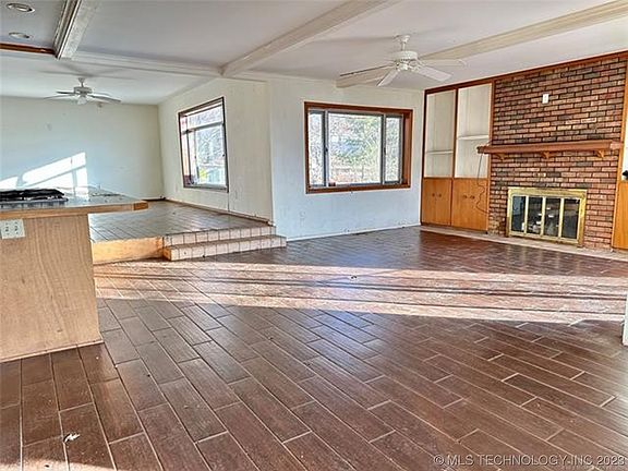 This is a very spacious home with 3 split levels. It includes 4 beds and 3 full baths with 2 living areas. The back flex room is wired for a hotub inside. It is an open concept floor plan and you will enjoy all the windows for natural light. The home sits on approx 1.35 acres with a scenic hillside view to the west. The front of the property has mature oak trees with a circle drive to the house. This is a fabulous home with mostly original features.