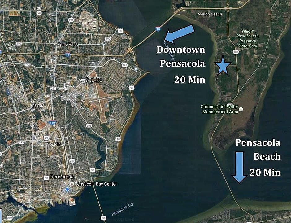 OFFER ENDS SOON! SELLER TO DEVELOPE AT MAX DENSITY 3 MILE BRIDGE BLUES?? Why buy a postage stamp lot for $100k+ in a neighborhood? Call (850) 475-4444 or email jeff@pensabeach.com 7.2 Acres on Pearson Rd (Mary Kitchens West of Avalon Blvd) (5) Surveyed 1.44 acre lots Pick your favorite lot and owner finance the others for a free land. Build on 1 then pick your neighbors and specs of the of houses they build The surveys are already completed and recorded, i.e., 5 tax bills too unless you combine and homestead. Isolated but close enough to everything. THE COURTHOUSE IS COMING!!! And all the government, businesses, homes and MONEY that comes with it. Like buying acreage in Gulf Breeze proper 40 years ago. Infrastructure and nicer construction happening now. Build 5 spec houses or 5 tiny home communities. Tiny home communities are coming soon. Cut a winding path to a hidden clearing for a mobile home or travel trailer for now and decide what to do later with the land. There is currently one culvert to the land from Pearson Rd. so you could bring in a bull dozer on the day you buy and start. (5) 1.44 acre buildable lots of land off Avalon Blvd between I-10 and the Garcon Point bridge. Land is one block from Escambia Bay. Still has the “neighborhood access” at the end of Michael Dr. by the old Pearson’s Oyster Bar concrete slab, clearing and trails. It will probably be something big and beautiful some day soon. Easy to dig a beautiful clear white sandy pond, it’s like beach sand… and FREE white sand to use around the property for the life of ownership. Property is about 20 minutes from Pensacola Beach, Downtown Pensacola, Downtown Milton, Pine Forest Rd or Navarre. 2.8 miles from I-10, 5 miles from the toll booth.