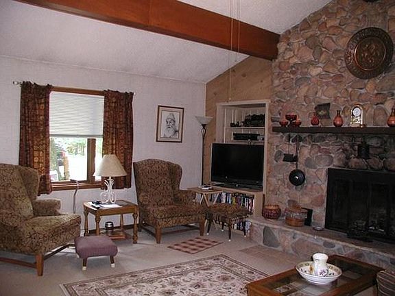 PINEWOOD DR HOME- A quiet cul-de-sac just minutes from town is the setting for this "secluded but not remote" 3 bedroom 1.5 bath home! Priced to sell for today's market it offers a beautiful fieldstone fireplace in the center of the living room, a warm and inviting eat in kitchen w/LOADS of natural light, 2 bedrooms and 1.5 bath on the main level which is perfect for entertaining, a cozy loft which can be a third bedroom, sitting room or office as well as a full basement! The lot is over 3.1 acres in size & heavily wooded so you feel removed from it all! Add to this a 2 car attached garage w/ access to both the main level and basement, a storage shed, garden area and green house and you cannot go wrong. The home is vinyl sided for low maintenance, has a blacktop drive & includes many recent updates from a newer drilled well to a new furnace in 2010, & a new roof in 2008.