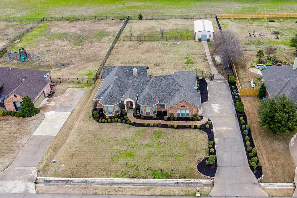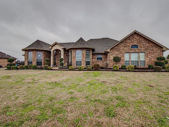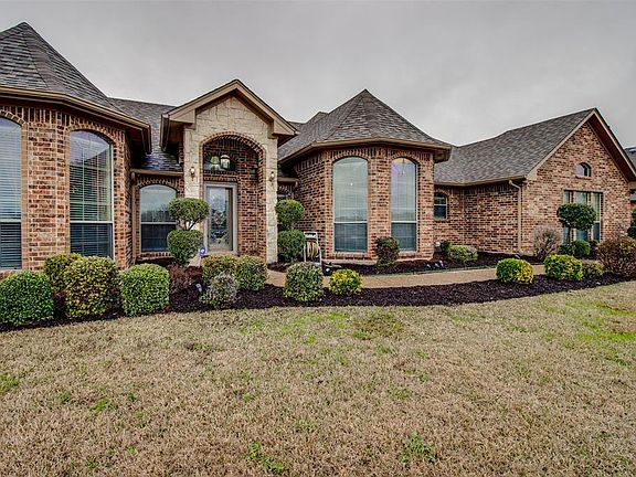 This beauty has curb appeal & more! Imagine waking up & relaxing on that covered patio! Open main living areas, lots of windows & great natural light are perfect. Wood laminate throughout with tile in wet areas. Wood burning brick fireplace is the focal point of the main living room. Two livings, a study & game room. Kitchen features lots of cabinets & counters with a bonus island & pantry. Master suite has vaulted ceilings, dual sinks, oversized shower & jetted tub. Two guest beds have walk-in closets and share jack & jill bath. We can't forget the large metal 40x20 shop with electricity. Property is cross fenced in the middle of the back yard. Close to schools, shopping, I-30, FM 548 & Stone River Golf Club.
