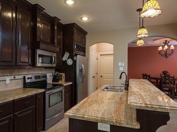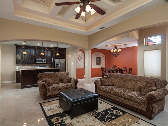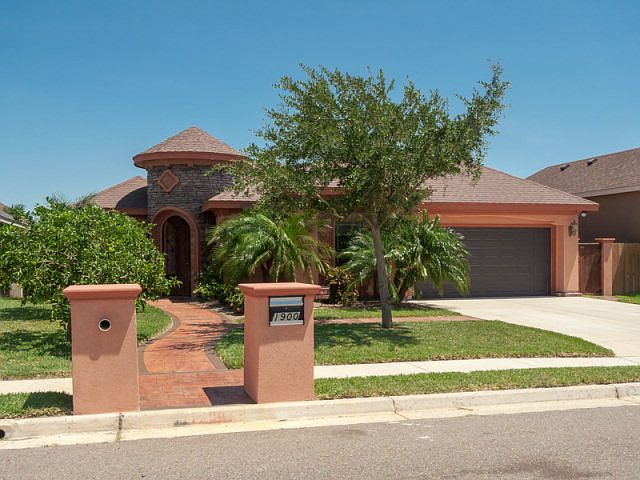Unique custom built home with tiled courtyard entrance. Step into the foyer and feel the spaciousness of this open floor-plan with soaring ceilings and niches of decorative tile and paint. Any cook will enjoy the ample granite counter space and stainless steel appliances. The large master suite has a jetted tub his & hers vanities, glass enclosed shower and big walk-in closet.Your family will enjoy the tiled, vine-covered pergola for outside entertaining and the South Texas native landscaping. There is a bonus room with a bath across the front courtyard. It is ideal for an office, man cave or a guest room. Many extras and decorative features. Show this home soon.
