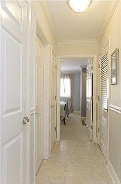 Pristine Cottage Style Condo w/ Vaulted Ceilings, Custom Paint, Crown Molding, French Door to Covered Back Patio, Kitchen updated w/ Travertine Tiles & Bead Board Cabinets, Bath w/Travertine Tiled shower & Pedestal Sink, add. 1/2 bath, Quiet location