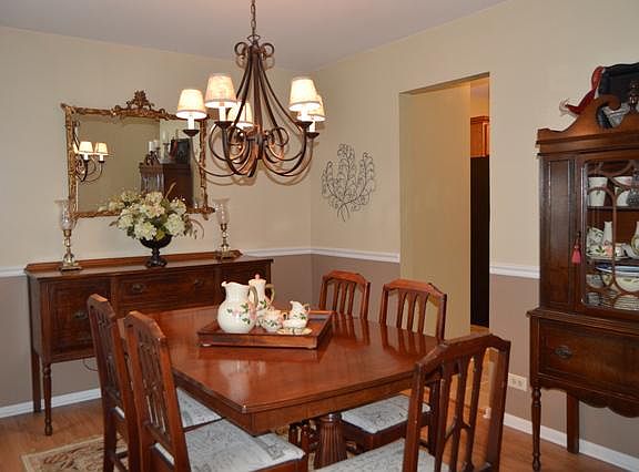Move in ready! Great 4 bedroom home with finished basement. Formal living & dining room with chair rail & custom chandelier. Eat in kitchen offers SS appliances, crown molding, ceramic tile & planning desk & is open to the family room w/brick FP. Vaulted master bedroom with ceiling fan, walk in closet & updated master bath with double sink vanity, ceramic soaker tub & separate shower. Updated hall bath. Finished basement w/rec room w/bar, excercise or bonus room, 1/2 bath & large storage area. Patio w/fenced yard. Newer roof, siding, windows, front door, HVAC & HWH! Walk to K - 8 school & park. Great home, great price! Shows well! You won't be disappointed! Hurry!