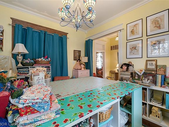 Take in the charm of this 1940's victorian-cottage style home with 10' ceilings downstairs with freshly painted walls & cabinets. Two large living areas, with formal dining. Primary bedroom downstairs and two bedrooms upstairs. (4th bedroom is the current formal dining). Raised corner lot with backyard fenced privacy. The Large magnolia tree provides shade and beautiful curb appeal. Two detached carport and storage building in back with drivable alley.