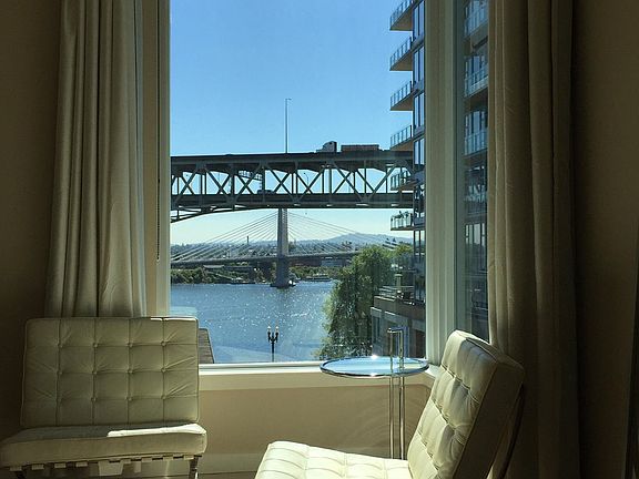 Hard to find, well maintained, large 2 bed/2 bath high end condo in downtown river front. Spectacular mountain,river, bridge,and city views! Watch fireworks and Christmas ships from your unit. Enjoy biking, kayaking, dining, and shopping just steps from your front door. 2 blocks from streetcar stops. Spacious and modern kitchen. Master suite has 2 walk-in closets, a marble bathroom with double sinks, and a separate shower and bath.