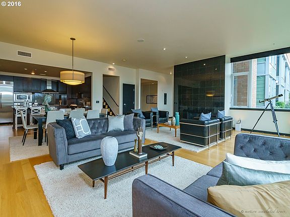 A premier riverfront townhouse with Willamette River, park & city views from all windows. 2578 sq ft of luxury living w/large, open floor plan w/fireplace that is the perfect area for entertaining your guests. Chef's kitchen area w/large island, premium appliances, granite counter tops & abundant storage for the most ambitious chef. 3 bedrooms and utility room up top. 3 full bathrooms and secure parking.