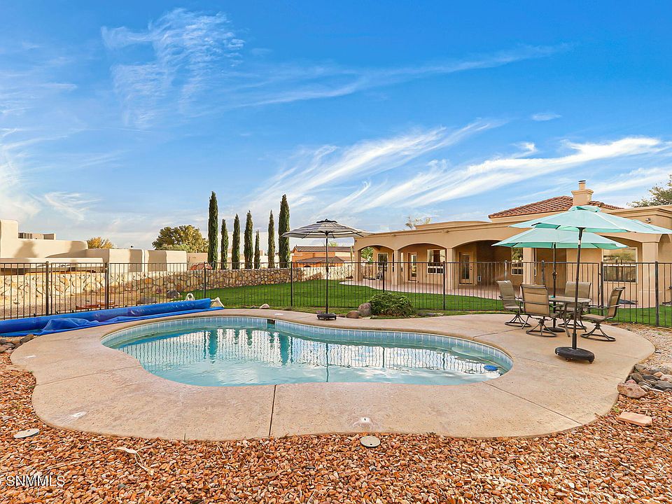 Welcome to your dream home! This beautiful property sits on a spacious .37-acre lot with an east-facing backyard and partial Organ Mountain views. It's the perfect setting for entertaining, relaxing with family, or letting pets enjoy the outdoors. The backyard is a true oasis with lush green grass, a large covered patio, and a sparkling swimming pool that's safely fenced in. You'll love the convenience of the large circular driveway, plenty of extra parking along the side of the home, and a spacious garage with its own built-in storage room. Inside, the home has been lovingly cared for and features four comfortable bedrooms and two full bathrooms. The kitchen is a chef's delight, offering abundant counter space, a breakfast bar, and all appliances included making it the perfect space to gather and create lasting memories. And the best part? This wonderful home is in a fantastic location, just minutes from shopping, dining, and all the conveniences you need. Make an appointment today!