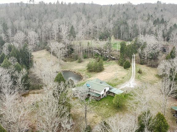 Looking for a retreat that offers everything? Sitting in its own private valley with a private entrance into 48 acres, this property features a large stocked pond, huge barn, and useable land with captivating views. The cabin offers 4 bedrooms with an open layout and natural lights in all directions. Don't miss this opportunity! Being sold as-is.