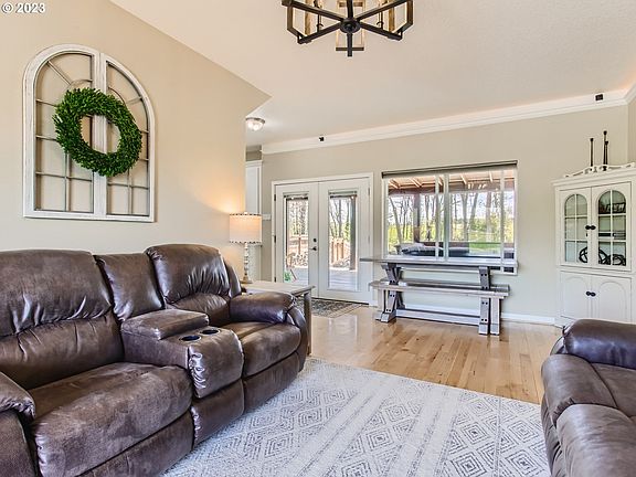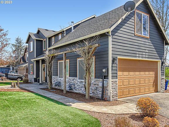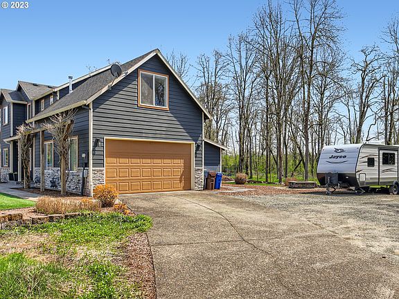 Private Park-Like Setting in Molalla. Rare .56 Acre Lot with Open Space and no neighbors on two sides. Bear creek runs through your private setting. Pride of ownership shows in this spacious 1695 Square Foot Traditional. 4 bedrooms including the Bonus Room upstairs. Remodeled Kitchen and Bathroom on Main Level. Kitchen has been upgraded with Quartz countertops, Tile floors and SS appliances. Natural wood floors on Main level with carpet upstairs. Den/Office on main level too. Exit out the back to an approx. 16 x 28 Covered deck complete with Outdoor Kitchen with BBQ, 2 burner stove, Fridge and Copper countertop with gas Tiki Torches. Beautiful Water feature in back yard as well as several trees and a fire pit. Plenty of off street parking including an RV hookup, and room for a shop. Whether your cozy with the Pellet Stove in the winter, or relaxing in the shade outside in the summer, This home has something for everyone. Close to grocery shopping and restaurants , but feels like your in the country when you get home.