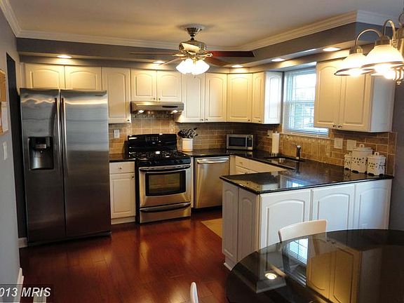 Charming 3 Bedroom/2 Bath Townhome in Dunshire! Bazillion Cherry Hardwood Flooring Throughout, Gourmet Kitchen with Granite Counters & Stainless Steel Appliances. Recessed Lighting, Crown Molding, Chair Rail & Frest Paint throughout. Master Bedroom has a walk in closet & Master Bathroom with Marble Shower Surround & Modern Faucets. Large Open Basement. Shows like a Model.