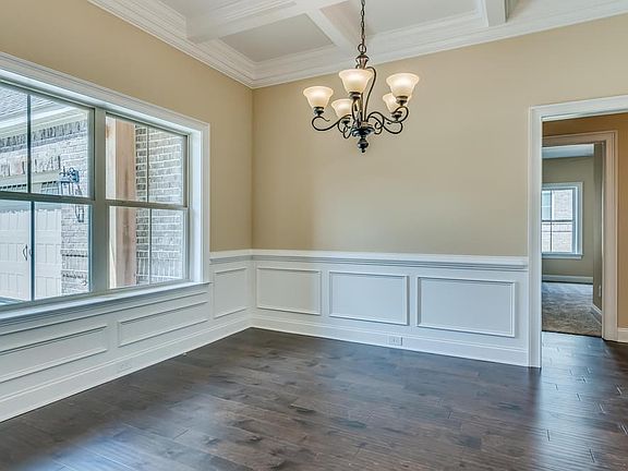 The "Chatsworth" is a Ranch-style house that is sure to please. This 4 bedroom 3 bath plan starts with the refined foyer entry way that joins to the formal dining room rich with hardwood flooring. Next, experience the open kitchen with large center island and adjoining breakfast room. The kitchen offers built in appliances, granite countertops and walk in pantry. The large great room area is complete with a natural gas fireplace and opens out to a covered porch area that is great for relaxing after a long day. The master quarters provides a large bedroom and bathroom area with double granite vanities, garden/soaking tub, tiled shower with glass door and spacious walk in closet. This one story design will not disappoint!