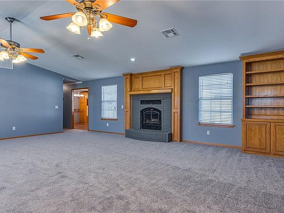 Beautifully updated 3 bedroom, 2 bathroom, oversized 2 car garage home with a 20 x 40 shop on a large corner lot. Large kitchen with custom oak cabinets that feature multiple lazy susans and pull-outs for easy access to all your pots and pans. Fresh coat of paint throughout entire house. New carpet and wood flooring with natural colors throughout. The living room boasts beautiful built-ins, and secondary bedrooms have ample space for your family. This home also includes amenities such as an in-ground storm shelter, spacious covered patio perfect for entertaining. Easy access to I-40, shopping, dining and theater. This home has it all!
