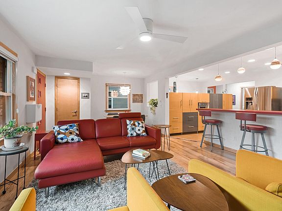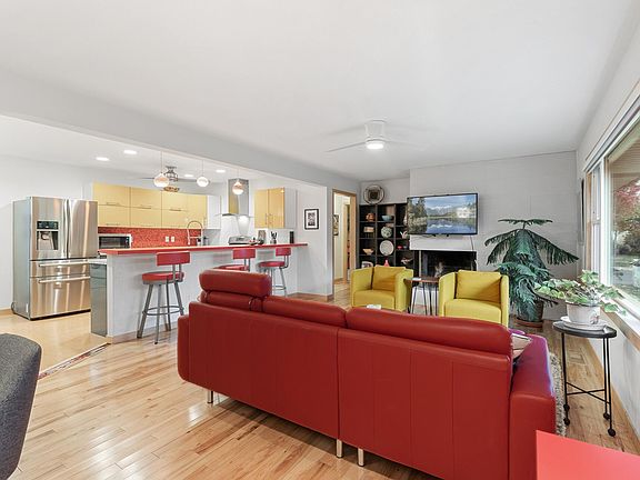 Welcome to 100% main level living! This mid-century rambler went through a major addition and vibrant modern remodel in 2014-2015. Main level features an open floor plan with a great room, 3 beds, full bath and laundry. The kitchen showcases modern cabinets with "pantry wall", SS appliances and cork floor. A mid-century fireplace warms the LR along with hickory floor and a large picture window for lots of natural light. The main level full bath features contemporary yet tranquil design with access to master bedroom and great room. The 2 car garage is connected via a breezeway. The mature gardens create private outdoor space. (And it's fenced for your pets!) The exterior is low maintenance so you can enjoy the MN seasons! The LL is currently workshop and storage space. Build equity by creating a family room, bedroom and bath. The neighborhood is wonderfully walkable with easy commuter access A great condo-alternative for downsizers or equity builder for any home buyer.