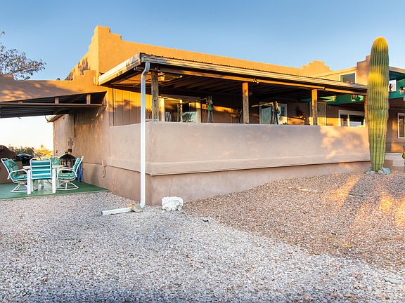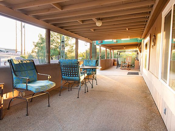 Transformed into a super sweet Santa Fe with additional living space both inside and out. Completely fenced. Original home square footage is 1440 sq ft with an additional 600 sq ft of enclosed Arizona Room, Office and Spa Room. Porches and decks on 3 sides of the home. Built in BBQ. 2 car carport, plus 1 car workshop/garage with water and electric plus and additional storage shed. The home has been well cared for and occupied only 6 months out of the year. Most of the furniture can be included at no additional cost/value.