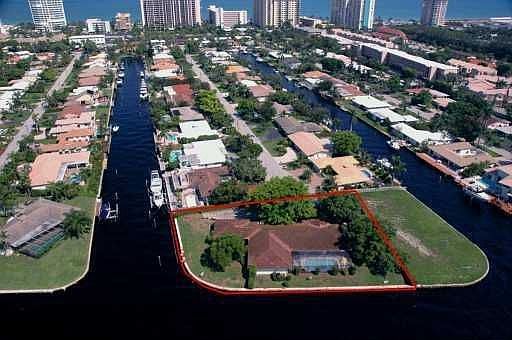 Location Southeast 18th Avenue, Lauderdale-by-the-Sea, Florida. Lauderdale-by-the-Sea is a true Gold Coast gem, nestled on a beautiful barrier island between the blue waters of the Atlantic Ocean and the Intracoastal Waterway, just east of Fort Lauderdale. Through careful planning, this charming seaside community maintains its unspoiled surroundings in a relaxed atmosphere reminiscent of the Florida Keys. Quaint Pelican Square serves as its centerpiece in a lovely village setting amid brick sidewalks, antique-style streetlamps, lush landscaping, and an oceanfront observation pier. Here, there is a wonderful array of boutiques, specialty shops, and dining options ranging from casual bistros to elegant gourmet restaurants. Caressed by the gentle trade winds, Lauderdale-by-the-Sea is blessed with an abundance of exquisite golden-sand beaches. Excellent snorkeling and scuba diving are enjoyed with a coral reef just 100 yards offshore teeming with colorful fish and other marine life. Lauderdale-by-the-Sea is just a short drive away from Fort Lauderdale Executive Airport and Fort Lauderdale-Hollywood International Airport. Property Stellar panoramic vistas sweep wide open from this sprawling Intracoastal point lot distinguished by its significant size and extensive deepwater frontage, spanning an incredible 277±  feet long including 177± feet directly on the Intracoastal and another 100± feet on the side canal. Highly prized by the avid yachtsman, the pr otected dockage gives direct access to the Atlantic Ocean unobstructed by fixed bridges. The viewpoint is simply sublime, stretching up and down the shimmering waterway and all the way down another wide canal across the Intracoastal. In this rare opportunity, the vast .45± acre grounds present a truly inspiring setting for the creation of an unparalleled luxury estate home in quiet seclusion at the end of a cul-de-sac. If desired, the property could also be divided into two waterfront lots, each of considerable size. The site encompasses capacious lawns with mature trees, and has an existing three-bedroom, three-bath residence. The caliber of this absolutely magnificent Intracoastal point lot places it in a class by itself.