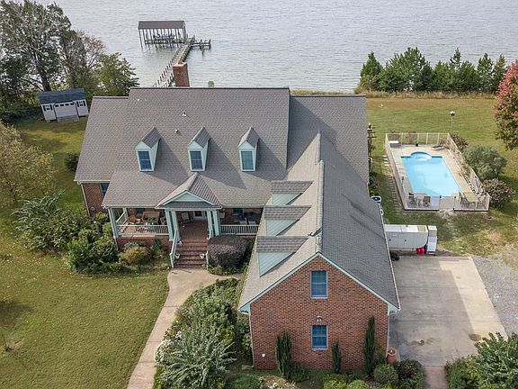Tucked away on a private drive you will find this gracious custom designed all brick home. Custom built by the current owner and situated so the home faces do West, you have some of the best views of the Great Wicomico River, and magnificent sunsets. The 6,241 square foot home has superb craftsmanship boost 6 bedrooms 3 full & 2 half baths, formal dining & living room, pair of stairs on both sides overlooking the 2-story great room, with a wall of windows overlooking the Great Wicomico River (585' pf waterfrontage) and open to the large kitchen and breakfast area (granite counter tops, custom cabinets, high end S/S appliances). The master bedroom is located on the first floor with wide water views, and gas log fireplace w/ remote. Not only does the home provide plenty of space for entertaining, but the 6.25 acres is also perfect for large gatherings. In the summer take advantage of the sand beach, 200' deep water (5+) pier with boathouse and electric lift to accommodate a 36+ boat, and in-ground pool with 7' on the deep end, full back deck with 180 degree views, and a 7 x 7 hot tub. This is a unique opportunity to own this beautiful property in the historical Northern Neck of Va.....Seller needs 24 Hour notice!