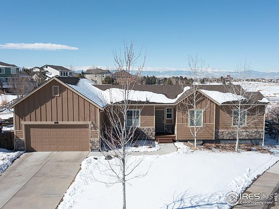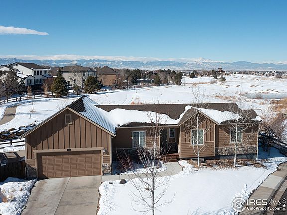 Views and comfort describe this home. Longs Peak is framed in the kitchen window. This home sits next to the tee box of the ninth hole of Vista Ridge golf course with a few corridor of the front range and surrounded by walking tails. Community Center proved pools and gym. Open floor plan with granite countertops, designer kitchen and fireplace. Main bedroom on first floor has a private deluxe bath. Lower floor nicely finished with extra space for multiple uses and a bedroom and bath.