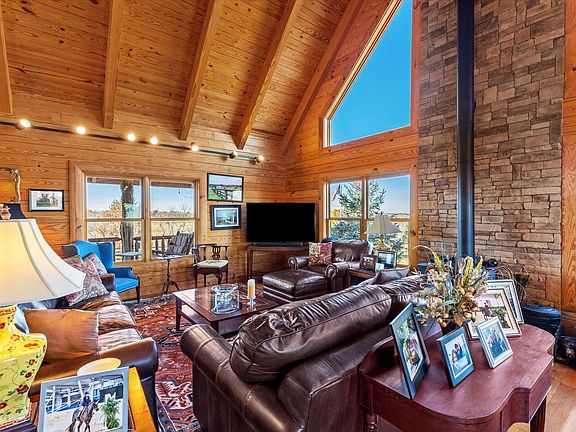 Wow! Views for days, updated home w primary suite (w 2 walk. in closets) and large home/farm office (or could be 4th bedroom) on main level, Beautifully updated kitchen in '22 w custom cabinetry, granite countertops and high end SS appliances, including gas cook top. Open floor concept w soaring ceilings and views to die for! Large dining area. 2 additional bedrooms, flex area and full bath upstairs. Covered front porch and large back deck for grilling and relaxing. Walk directly down the path to the Elkhorn! Short walk from the house to the 19 stall barn w feed room/tack room/laundry, horse wash stall w hot/cold water; equipment barn/shop w 2 quarantine stalls, horse equisizer, bungalow. w kitchen and bathroom for groom, 4 paddocks, 3 fields and 1 large cow field. Walk down your private path to the Elkhorn Creek!