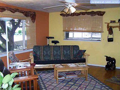 Light-filled, southwest-style home in Silver Heights neighborhood! Spacious, solidly built home with loads of storage on double sized lot. Stucco on block construction is year-round energy efficient. Rental apartment with private entrance and separate garage and utilities adds income -- or use it as your home/office or artist studio! Natural light flows throughout spacious rooms, with windows galore and glass block wall in main kitchen. Wall frames yards with fruit and shade trees; underground watering system. Extra parking on side yard and low-maintenance xeriscaped yard with garden in back. 3BR/2BA.