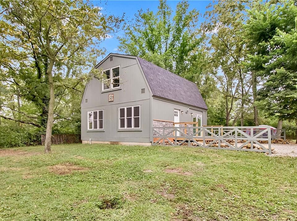 Nestled just outside Harrisonville city limits, this beautifully updated 3 bedroom farmhouse-style home offers a charming blend of modern amenities and rustic appeal. The home's exterior exudes warmth and character with its cute stone-facing front and inviting front deck, perfect for morning coffee or evening sunsets. This gem sits on an acre of land, providing the perfect balance of country living with easy access to city conveniences. Step inside to discover a thoughtfully designed interior, with shiplap accent walls, bead board detailing, and ceiling designs that add a touch of artistry. Every aspect of this home has been meticulously updated, from the new wiring and plumbing to the insulation, roof, and windows. It's truly a worry-free haven where everything is brand new, ensuring comfort and peace of mind for years to come. Located just minutes from I-49, this tranquil retreat is a mere 40-minute drive from the vibrant heart of Kansas City, offering the ideal blend of rural tranquility and urban accessibility. Whether you're looking for a serene countryside escape or a welcoming space to call home, this farmhouse is ready to embrace its next chapter with you.
