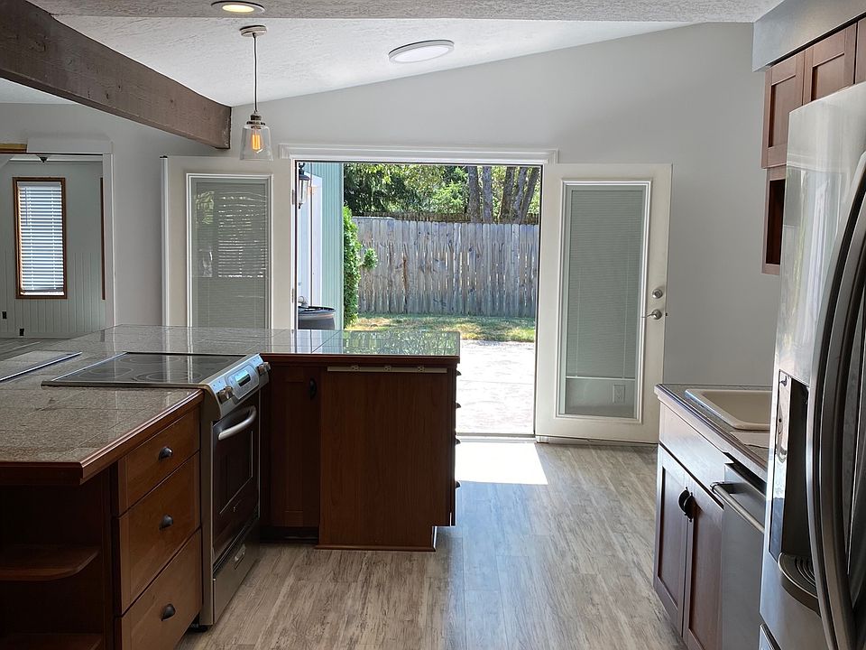 Very spacious home located just off Farmington & 189th. Quiet Cul-de-sac home on a very large lot. Three bedrooms, two bathrooms on single level including the master bedroom. All new flooring on main level. Very spacious eat in kitchen with double doors that open up to patio. Sunken living room with incredible natural lighting, vaulted ceilings and exposed wood beams. An addition to the single level home is a large bonus room with double doors leading to patio. Two additional bedrooms and one bathroom located upstairs. Double car garage with washer/dryer provided. This is a must see! Main level 1781 sq.ft. Upstairs 522 sq.ft.