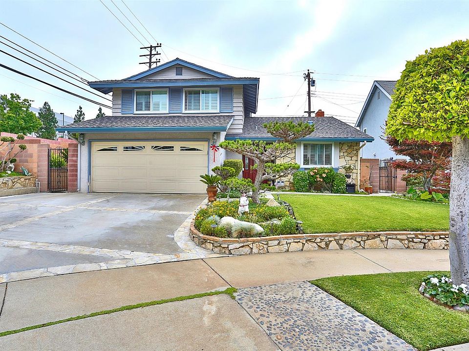 Awesome Home! Dynamite Curb Appeal! This Beautiful 2 story home situated in a great neighborhood in a cul-de-sac has a Classic open floor plan perfect for the growing family. With high ceilings, ceiling fans throughout, new laminate flooring and tile.. New carpet and textures and tons of bright light make this home shine. On the lower level there are two main living areas both well appointed, Formal Dining Room. The kitchen is a Chef's Delight with lots of counter space, black appliances. Big Pantry, Deluxe Cherry Cabinets. House has all brand new windows. The upstairs is just as impressive starting with another office/study/bedroom area for the kids. All 4 of the bedrooms are great size with beautiful bright Windows with nice size closets. All bathrooms have been remodeled. Your Master Suite is immense with his and her closets, classy tile, dual sinks and vanity, nice shower, all fit for Royals in your life. Huge lot immaculately landscaped and Green with hard to find larger lot in cul de sac. 2-car garage. The backyard is an entertainers delight with luxurious landscaping,trees and strawberries and tomatoes garden tons of custom concrete. Make this awesome home yours today!!!!