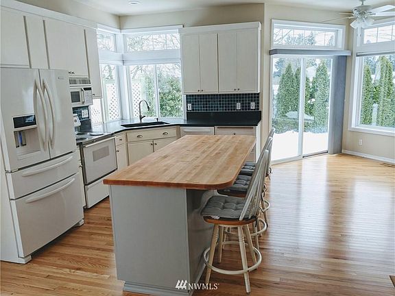 Beautifully appointed rambler in a peaceful & private tree-lined cul-de-sac close to downtown Bothell! Formal living w/ gas FP & dining rooms accented w/ gorgeous wainscoting, hardwood floors & tons of natural light. Bright & open kitchen w/ new quartz counters, eating nook, center island w/ bar seating & a family room w/ gas fireplace & slider to patio. 3 bedrooms including a lovely master suite w/ remodeled en suite bath complete w/ soaking tub, dual vanities, glass shower & walk-in closet. Tons of storage in closets, walk-in pantry & oversized 2-car garage. A short stroll or drive to top Northshore schools, dining in downtown Bothell, groceries & nearby parks. Quick access to transit, 522 or 405. This is the one you've been waiting for!