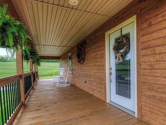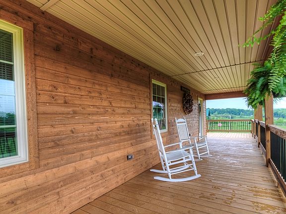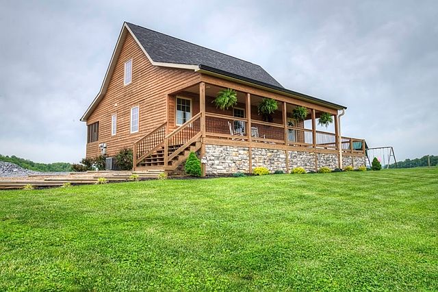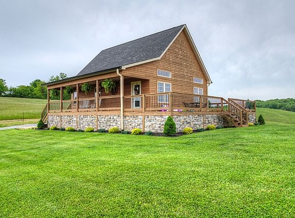 Fully functional working farm with a newer custom built home designed for the active country lifestyle is awaiting a new owner. The home is a custom floor plan that has Rustic Charm with Modern Conveniences!! As soon as you walk in the front door your are greeted by a DRAMATIC WOODEN CATHEDRAL CEILING with a fireplace that is the focal point of the living room and is accented by hardwood flooring and lots of natural light. The kitchen has many upgrades such as hickory cabinetry, quartz counter tops, top of the line stainless steel appliances and a full center island that provides lots of work space for the chef of the family! The dining area has a full glass door that leads out the the screened in porch with Mountain Views for miles!. The master bedroom is on the main level has a full bath with walk-in closet. The second bedroom is upstairs and has a full bath as well. The lower level of the home has a den area with a walk out door leading to the covered patio area.