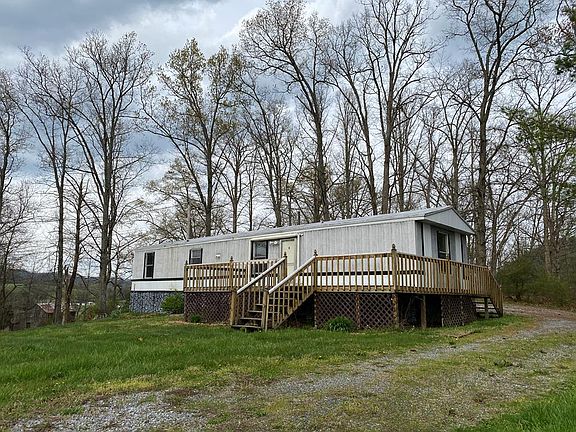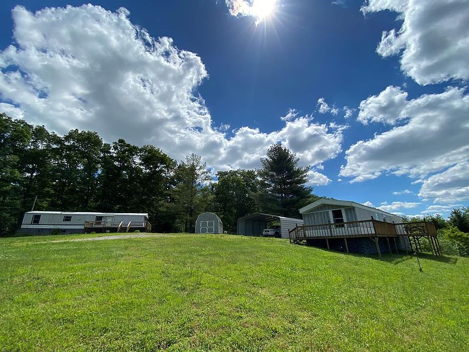 BUY 2 HOMES NEAR LAKE AT A GREAT REDUCED PRICE! Invest, build on, or just enjoy this private, double-lot property with lovely panoramic views near South Holston Lake. There are two 14'x60' singlewides, one with 2 bedrooms and 2 baths, and another with 2 bedrooms and 1.5 baths. Each has a deck and a 24'x21' carport. The property has a total of 4.58 acres of land with a creek. A large shed offers space for storing mowers, bikes, canoes, and other items; it has electricity and could also be used as a workshop. The chain link fencing on the large dog lot needs some repair but would be nice for even for livestock needing only limited space. This property could produce income as 2 rental homes with separate septic, water, and electric service, but it also offers the possibility of living space while building a home to take advantage of the views.