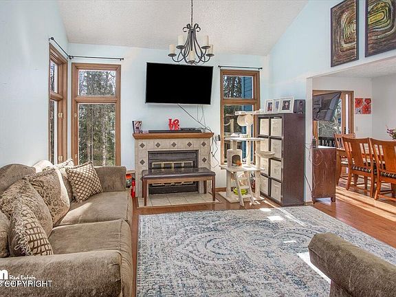 Located on a quiet loop in the desirable Eaglewood Subdivision-- with pleasant lighted walking trails and tree-lined streets. Vaulted ceilings, hardwood floors and many unique features. Yard offers 2 back decks. Finished basement with 2nd Living Space, full bath and bedroom w/ large walk-in closet. Easy commute to Anchorage and 9 miles to JBER.