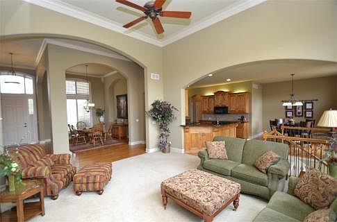 Why hassle with building? This quality Don Julian former model home has been exceptionally maintained & is completely move-in ready! Tucked away on a quiet-cul-de-sac lot in a wonderful golf course community with easy access to shopping & major highways! You will love the beautiful architectural detailing including soaring archways, high ceilings, elaborate crown molding, grand windows, rich hardwoods, & a warm, neutral decor throughout! There are even upgraded Plantation shutters! Sleek granite Kitchen boasting a walk-in pantry! Convenient first floor Secondary Bedroom or optional Den! Expansive finished walkout lower level complete with a full wet bar, two more Bedrooms, & tons of living space & entertaining space! The home also features great outdoor living space including a large patio, deck, & lush yard with plenty of room to roam & play! For more information, please call 913-661-2303.