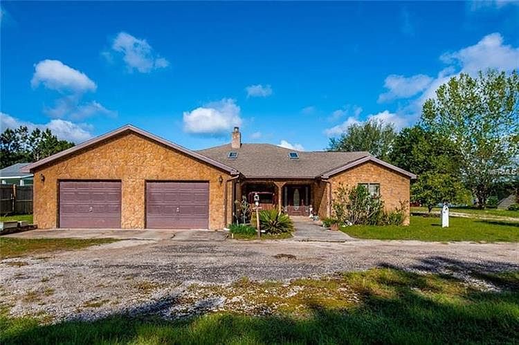 Major REDUCTION!!! Priced to sell! NEW ROOF! Lake front 2500 square feet, 3-bedroom, 2 bath, 2 car garage well maintained home in a peaceful, tranquil and private 1.8-acre country setting 5 minutes from FL Turnpike. Enclosed solar heated pool. Horses other livestock permitted. Large eat-in kitchen with butcher block counter tops. Extra-large living dining room combo with charming wood burning fireplace. Master suite has large walk-in closet, shower and tub. Two additional bedrooms share hall bath. Florida room and two single door garages are air conditioned. Live indoors outdoors in peace and harmony. Beautiful sunsets will end your day with a calming effect, that money can't buy. Storage sheds to keep all your tools and toys. Free one year home warranty with original listing price ($329900) offer.