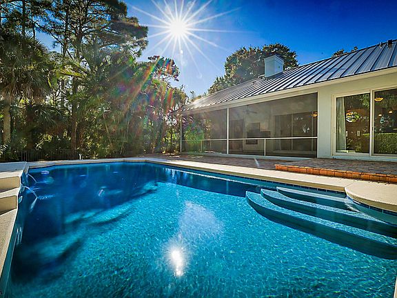 Escape to peaceful living in Old Trail at Ranch Colony--a gated community with 24/7 manned security and two of Jonathan's Landing championship golf courses. This 3BR/2BA home sits on 3/4 acre on the 14th hole of the Medal Course with a private pool, screen-enclosed patio, and summer kitchen. Features include a brand-new roof, fresh interior/exterior paint, fireplace, and wet bar for entertaining. The master bath offers new vanities, and the 3-car garage includes a golf cart bay. Enjoy serene views, nature, and quiet surroundings in this exceptional home--perfect for golfers and those who love a tranquil, country setting close to Jupiter's best amenities.