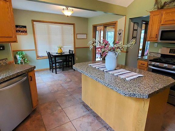 This meticulously-maintained 4-level split with an over-sized 2 car garage, 4 BR, and 2 full baths sits on a corner lot in the Oaks of Shenandoah, one of the most sought-after neighborhoods in Coon Rapids. The vaulted ceiling contributes spacious ambience. A large eat-in kitchen features an abundance of natural light, oak cabinets, SS appliances, and granite counter tops. A sliding door opens to a three-season sunroom and an expansive two-level deck. Great for large gatherings! The upper floor features a huge owner’s suite with a walk-in closet. You will love the soaking tub and separate shower in the main bathroom. Enjoy the spacious family room with a gas fireplace surrounded by beautiful oak built-ins. This walk-out level exits to a lower deck and a sprawling, tree-shaded fenced backyard. Basement level has laundry and multi-purpose bonus room. This home has an abundance of storage space! Close to trails, parks, and shopping. You will enjoy this quiet and beautiful neighborhood!