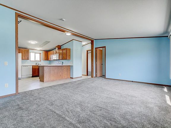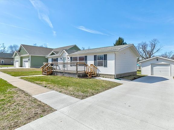 This charming 3-bedroom, 2-bath ranch-style home is designed for comfort and connection. Enjoy your morning coffee or evening chats on the spacious front deck, perfect for relaxing and catching up with neighbors and friends as they stroll by. Inside, you’ll find a well-laid-out floor plan featuring main-floor laundry for added convenience. The kitchen comes fully equipped with all appliances included—refrigerator, stove, dishwasher, and microwave—plus the washer and dryer stay with the home, making it truly move-in ready. The oversized 1-car garage offers extra storage or workspace, and the new concrete driveway installed in 2024 adds great curb appeal. The nice-sized yard offers room to play, garden, or entertain. New furnace install in January 2024.