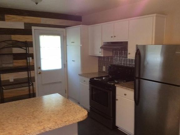 living room, study area, eat-in kitchen with breakfast bar, refrigerator, washer/dryer connections, outside shed, rear fencing, central heat/air (gas service required) no more than two pets and must be licensed with county