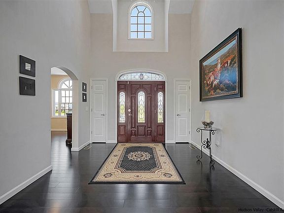 You can make your weekends last forever right here complete with dreamy Shawangunk Mountain Views! This elegantly designed contemporary will suit all of your needs. Top of the line finishes adorn every square inch of this home starting in the custom gourmet kitchen. Eat with friends at the 13 foot center island, whip up your favorite dishes on the six burner gas stove and don't forget to chill the bubbly in your wine fridge! Move with ease to the family room complete with wood burning fire place, and oversized windows offering brilliant light throughout the rear of the house. Enter the formal living room with cathedral ceilings perfect for holiday get togethers. The first floor master bedroom is sure to please with trey ceilings and swanky bathroom offering double sinks, oversized soaking tub & shower and his and hers walk in closets. Need more space? This magnificent home was built with guests in mind, each of the 4 bedrooms offers its very own private bathroom. The second floor offers skylights with catwalk making this home light and bright! Head to the basement to find the inner workings of this energy efficient home. On demand heat and hot water, pex piping, blown in insulation and solar make this home a low maintenance property. Love the outdoors? Head outside to the back deck or take a dip in the pool. You'll enjoy local farmers markets, Magnanini winery and The Wallkill Valley Rail Trail! Whatever you do, don't miss out on this one of a kind home conveniently located 90 miles north of NYC. Live, work, and play right here on Albany Post Road! Watch video tour to see the whole house.