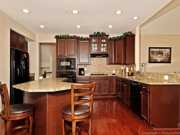 Welcome Home! 2 year young beautifully upgraded brick-front Colonial. Gourmet Kitchen with cherry cabinets, granite, tile backsplash, large center island/breakfast bar and hardwood flooring. Morning Room off Kitchen with hardwood flooring and vault ceiling. Formal Living Room and Dining Room. Lower Level Recreation Room, office/exercise room/playrm & bath. Luxury Master suite with raised double vanity, upgraded tile, soak tub & shower. Fenced rear yard & cul-de-sac location. Turn key condition.